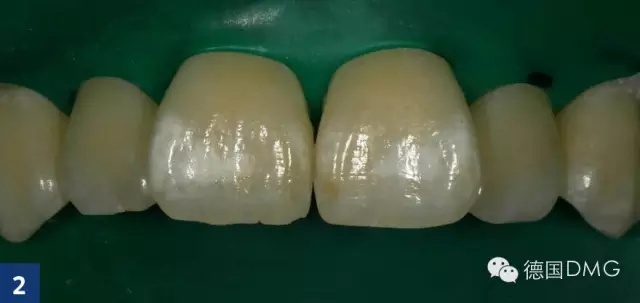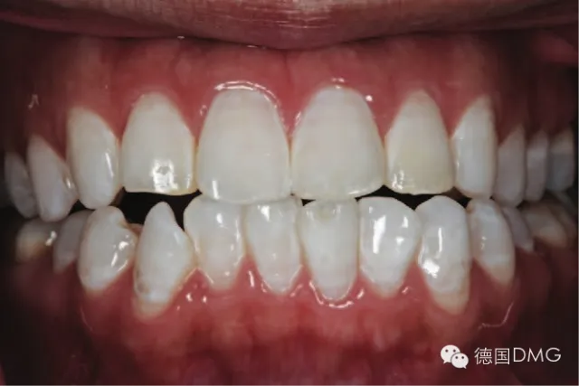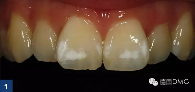 作为日常检查的一部分,患者强烈要求对前牙区的白色斑块进行治疗(Fig. 1). 权衡比较了多种治疗方案后, 患者和我们共同选择了渗透治疗。