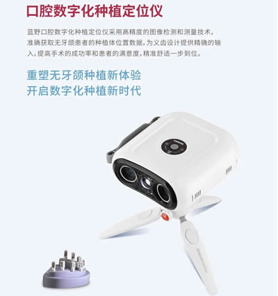 蓝野口腔数字化种植定位仪采用高精度的图像检测和测量技术,准确获取无牙颌患者的种植体位置数据,为义齿设计提供精确的输入,提高手术的成功率和患者的满意度,精准舒适一步到位。